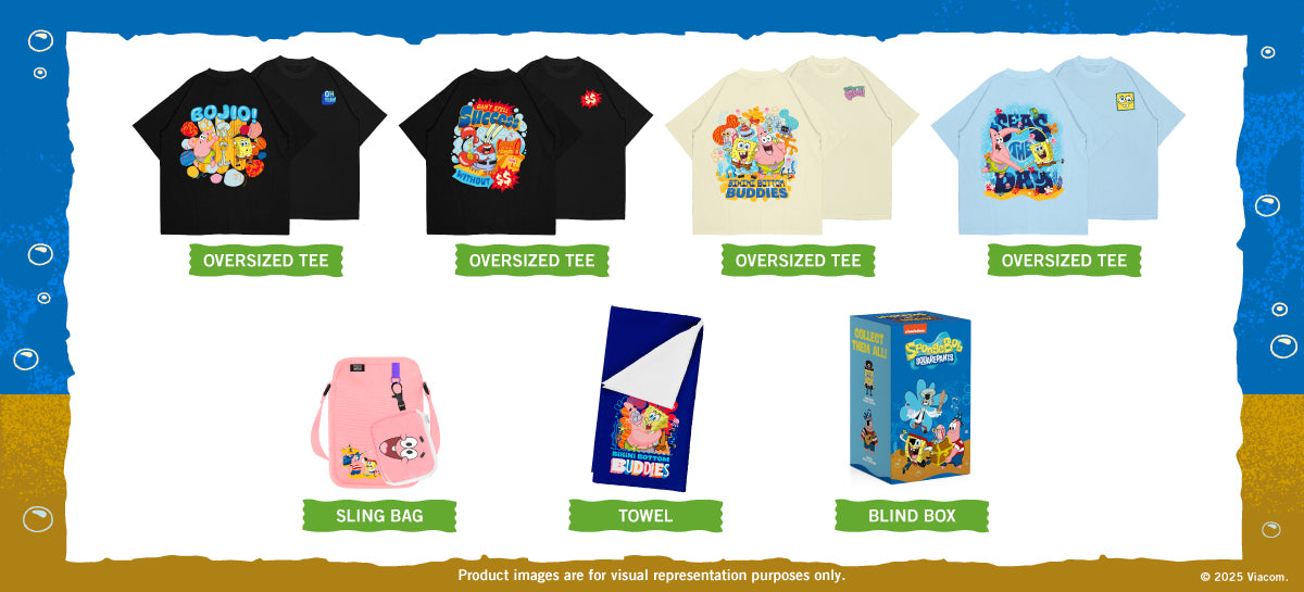From oversized tees to tote bags, sling bags, towels, and blindbox plush toys, there’s something for every SpongeBob fan! Don’t miss your chance to grab these limited-edition keepsakes.