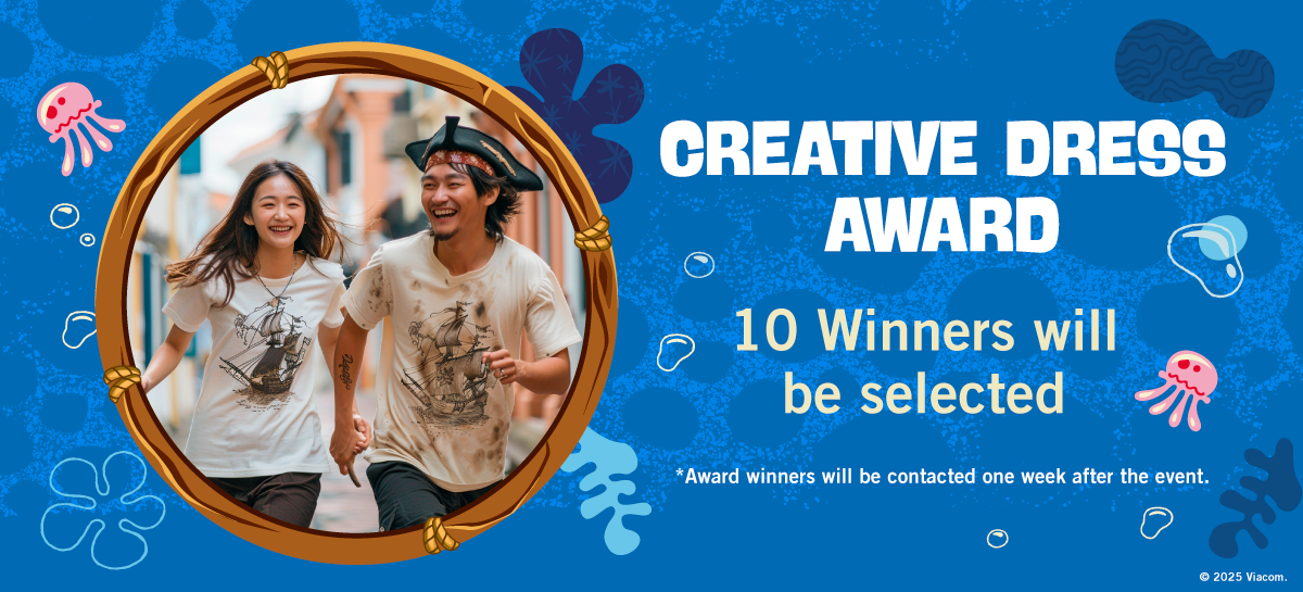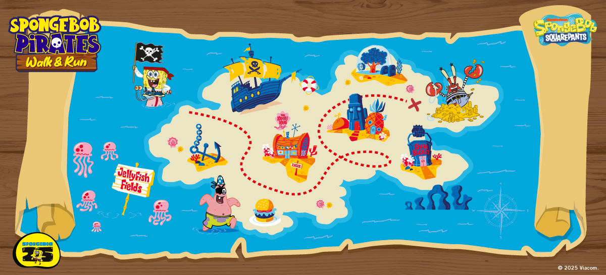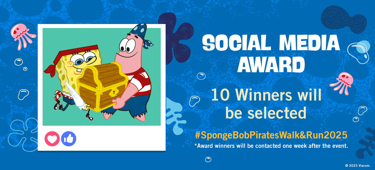 Snap your best moments from the SpongeBob Pirate Run and share them with our event hashtags. The 10 most creative posts will win exclusive prizes. Show us your SpongeBob spirit and chio moves!